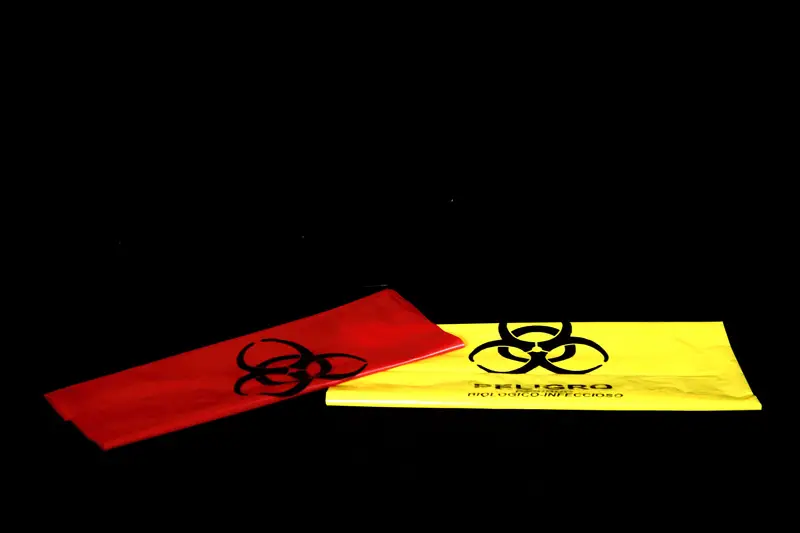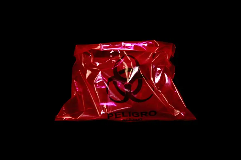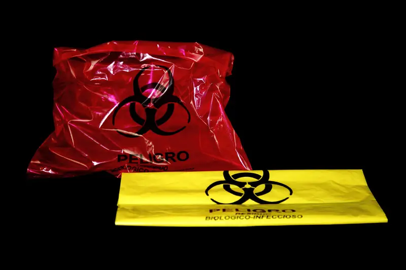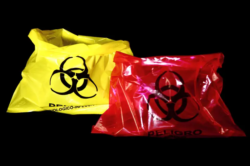 Bolsa de polietileno en color rojo o amarillo,en diferentes medidas y calibres, según necesidad. Impresa a una tinta con el símbolo universal de “Residuos biológico-infecciosos” y marcadas con la leyenda “PELIGRO, RESIDUO BIOLOGICO-INFECCIOSO”, con un contenido de metales pesados de no más de una parte por millón y libres de cloro. Cumple con la norma “NOM-087-SEMARNAT-SSA1-2002”.